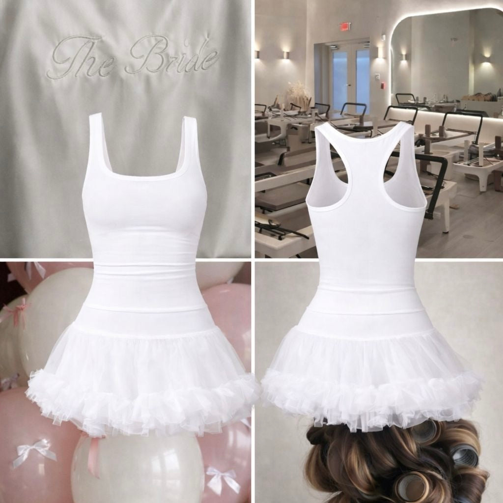 Two-piece set: a padded top with a skirt, with shorts underneath